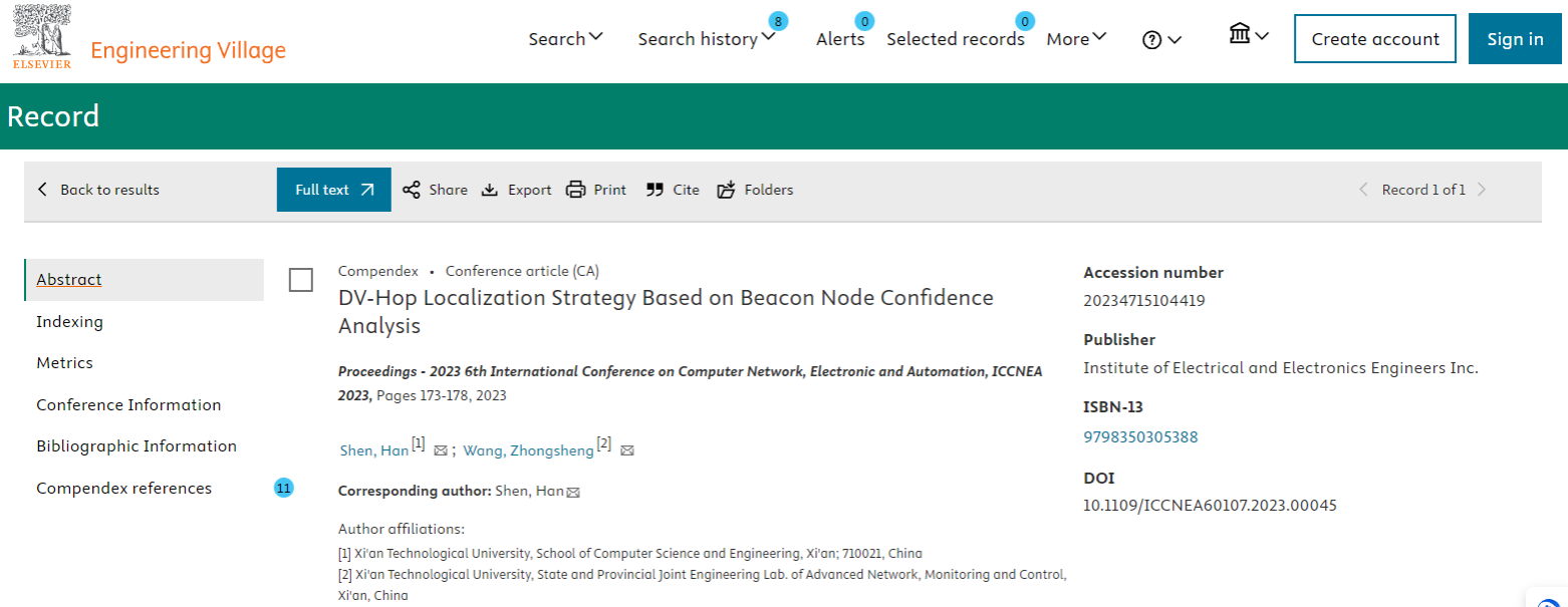 、人工智能与数据科学研究院联合主办的第六届International Conference on Computer Network, Electronic and Automation,ICCNEA)于2023年9月22~24日在西安顺利召开,经过主办单位、协办单位、IEEE CPS的通力合作,会议录用论文于2023年11月30日进入EI Compendex数据库,完成EI检索。