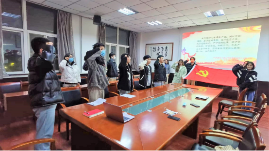 学生第一支部书记呼延晓蓉同志的带领下庄严宣誓,“我志愿加入中国共产党,拥护党的纲领,遵守党的章程……随时准备为党和人民牺牲一切……”各位新发展党员铿锵有力的许下为共产主义事业奋斗终生的誓言。