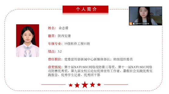 由于疫情原因余志濛同志未能返校,采取线上会议同步进行。