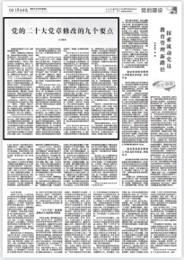 党章是我们党的根本大法,是管党治党的总章程。在党内,党章是最根本的党内法规,是党内的普遍行为规范。党章保障党员权利、约束党员言行。1922年,党的二大制定了党的第一部党章《中国共产党章程》,一百年来,我们党完成了18次党章修改。党的二十大通过的党章修正案,共修改50处,其中总纲部分的修改37处,条文部分的修改13处。根据形势和任务发展变化,党的十三大、十五大、十六大、十七大、十八大、十九大均对党章作出修改,同样的,根据形势和任务发展变化,党的二十大党章也作出相应修改。党章的每一次修改,都反映出我们党对客观实际和客观规律认识上的深化,都是对党的实践经验的最新总结,体现党的实践创新、理论创新、制度创新最新成果,能够在推进党的事业、加强党的建设中发挥重要指导作用。