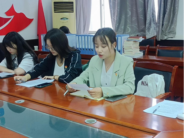 由胥蓉同志向各位党员同志们宣读学校文件: