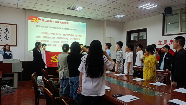 在领誓人呼延晓蓉老师的带领下,全体党员同志紧握右拳,坚定且铿锵有力地做出当初的入党誓词:“我志愿加入中国共产党,拥护党的纲领,遵守党的章程,履行党员义务,执行党的决定,严守党的纪律,保守党的秘密,对党忠诚,积极工作,为共产主义奋斗终身,随时准备为党和人民牺牲一切,永不叛党。”通过庄严肃穆的入党誓词重温,让在场每位党员回顾入党初心,坚定立场信念,让初心薪火相传,把使命永担在肩。