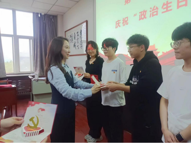 呼延晓蓉老师为本期发展的五名党员同志赠送政治生日贺卡,为支部5月入党的同志们过“政治生日”。