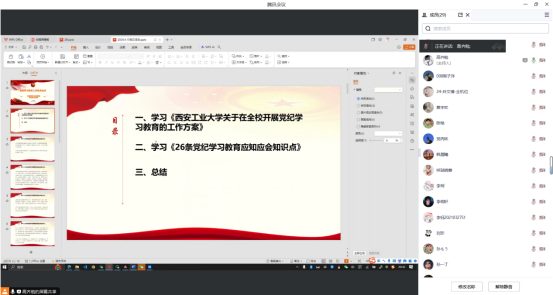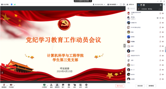 学生第三党支部召开线上党纪学习教育动员部署会议。党支部书记呼延晓蓉、副书记高齐勉及全体党员参加会议。