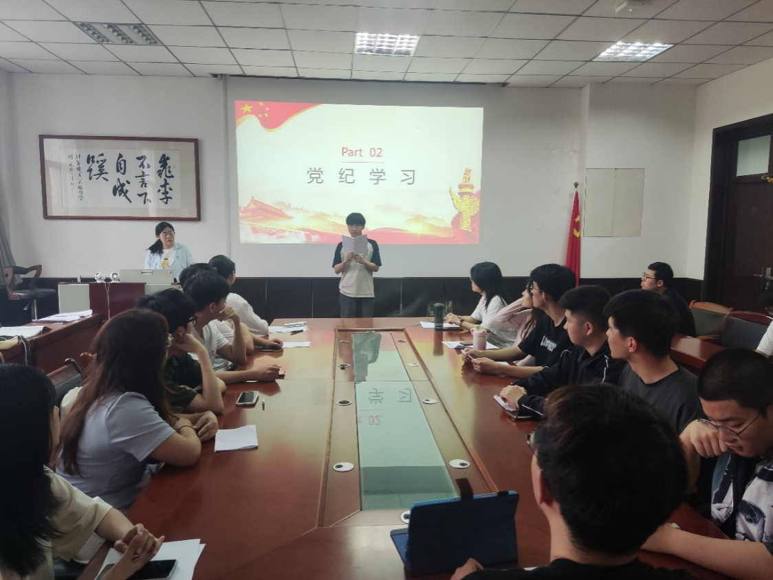 学生第四党支部在工一306开展党纪学习教育。党支部书记赵雨柔老师、安春雨老师、全体党员参会。