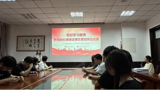 学生第三党支部支部书记呼延晓蓉同志围绕新修订的《中国共产党纪律处分条例》,为党支部全体党员讲授以“党纪学习教育—把党的纪律建设摆在更加突出位置”为主题的党课。