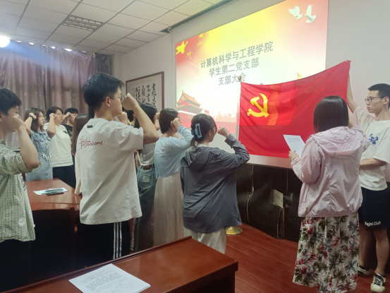 随后,党支部书记王梦馨带领新发展的六名预备党员及支部全体党员面对党旗进行庄严的宣誓,并提出要不断加强党的理论知识学习,积极主动地参加党组的各种活动,按照党章严格要求自己,起到模范带头作用的要求。