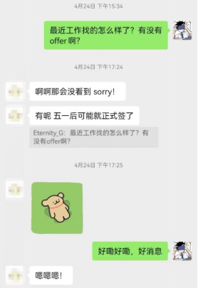 此外,在简历制作和面试技巧方面,高齐勉也给予了大力支持。他组织了简历修改工作坊和模拟面试活动,邀请有经验的导师进行一对一指导,帮助同学们提升竞争力。他还利用课余时间,耐心为同学们提供个人职业规划咨询,帮助他们明确职业目标,制定切实可行的求职计划。其中,他具体帮扶了聂弋帅等11名同学,针对他们的个人情况,量身定制了求职方案,提供了专业的指导和帮助,最终使他们成功地找到了理想的工作岗位。