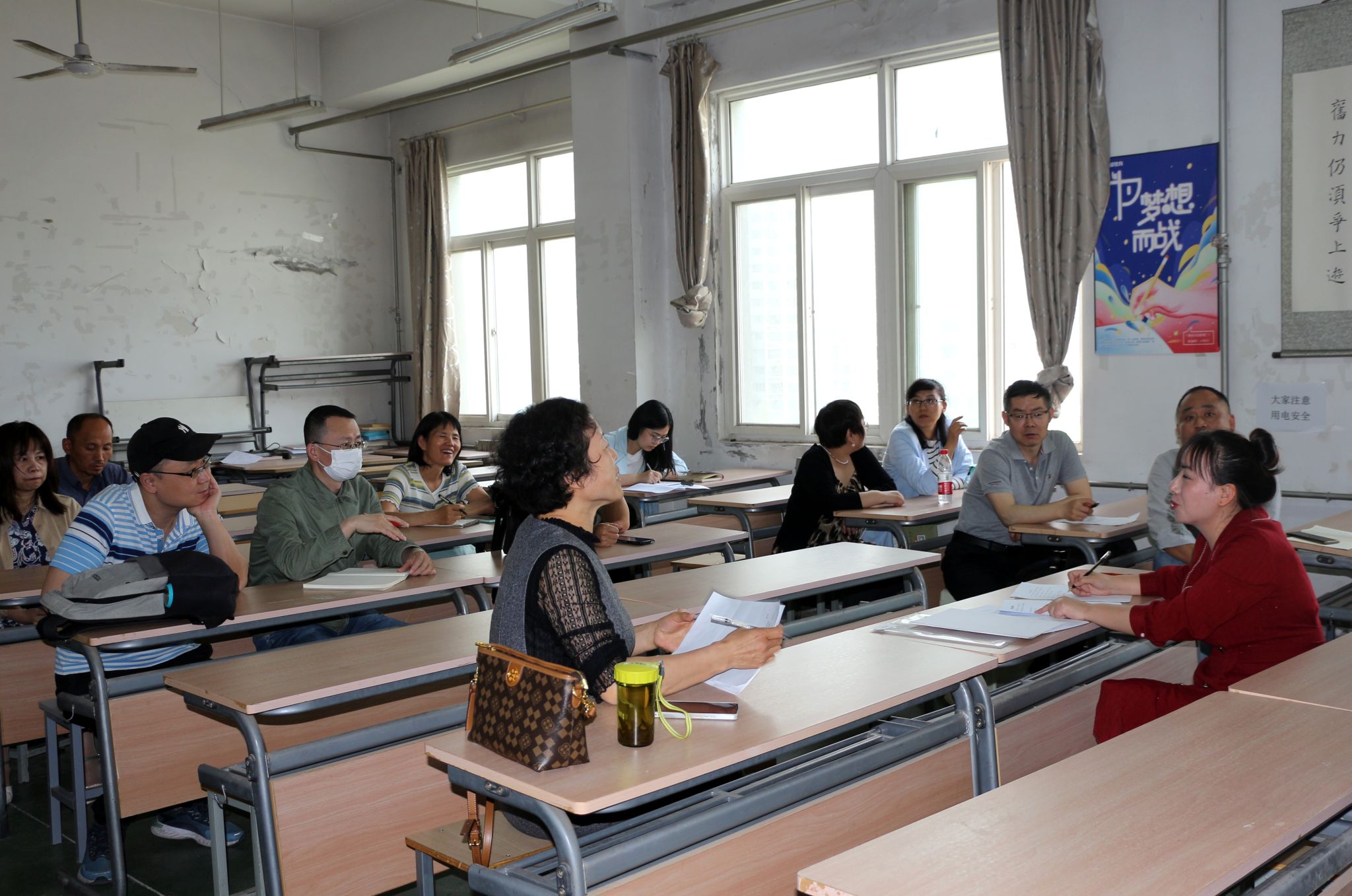 领导班子成员、各系主任、教师代表等参加,检查组副组长郭永春主持。